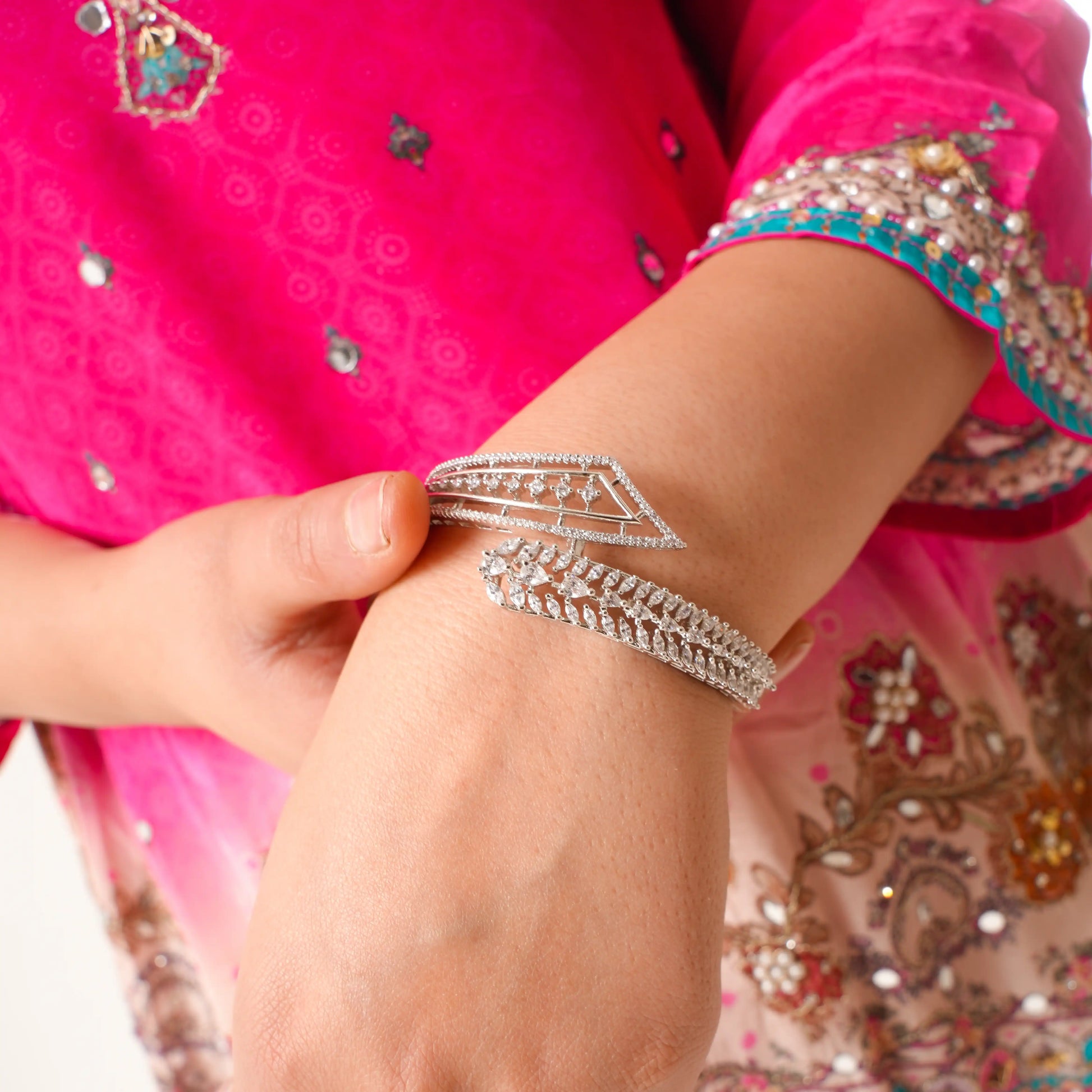 Its elegant leaf-inspired detailing adds a modern yet timeless charm, making it ideal for parties, receptions, festive events, and evening styling. Lightweight and comfortable, Elviora Spark Bracelet is crafted to elevate your look effortlessly.